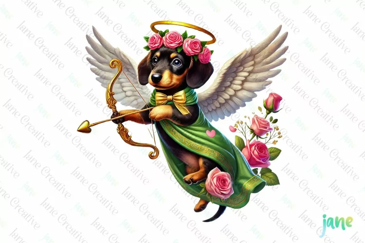Dachshund Dogs Cupid Valentine’s Day Sublimation example image 1