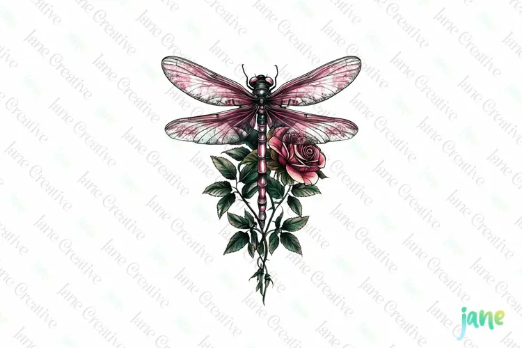 Dragonfly And Rose Flowers Tatoo Clipart example image 1