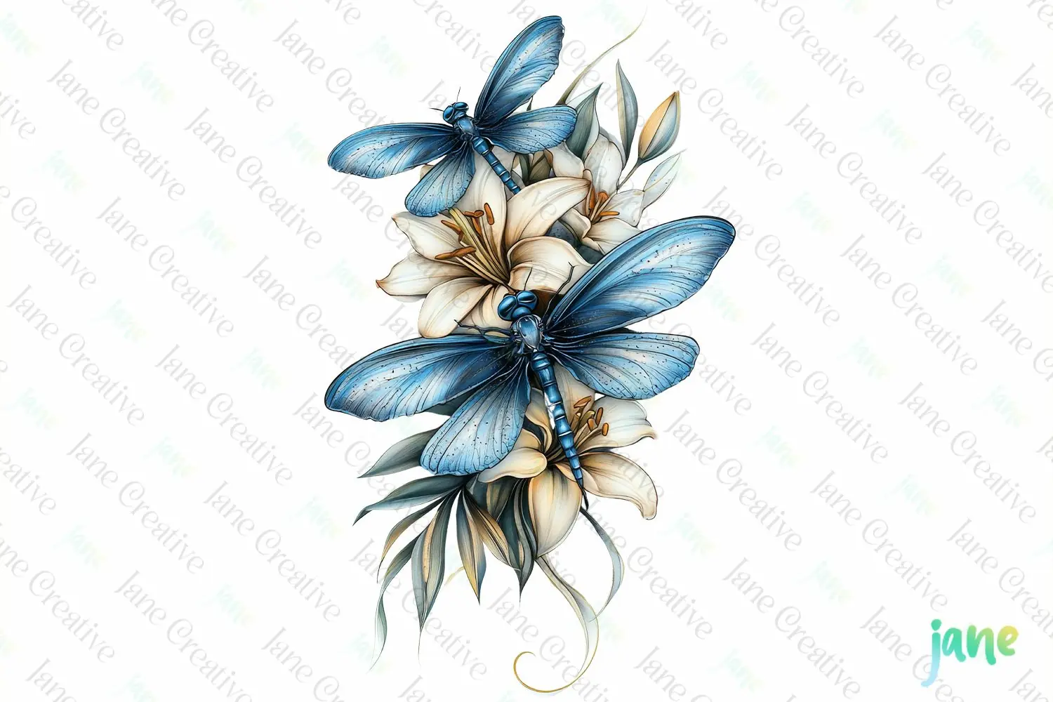 Watercolor Instant Download Digital Design Digital Prints Cute Design Sublimation Design Dragonfly Clipart Illustrations Art Dragonfly And Flowers Tatoo Dragonfly Tatoo
