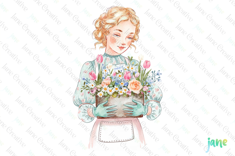 Watercolor Instant Download Digital Design Digital Prints Spring Garden Cute Design Garden Clipart Sublimation Design Gardening Clipart Illustrations Art