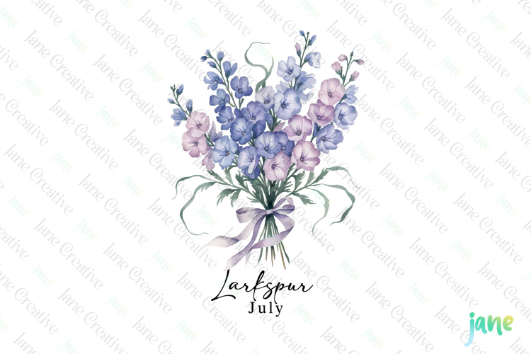 Similar Design Products to July - Watercolor Larkspur Birth Month Flower Clipart