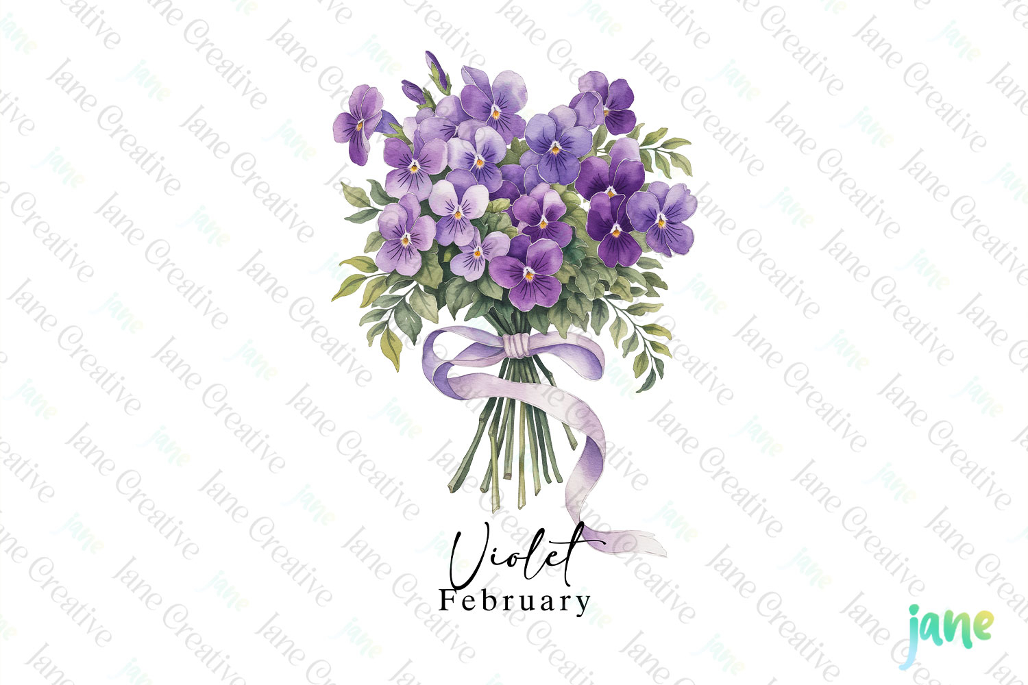 Similar Design Products to February - Watercolor Violet Birth Month Flower Clipart