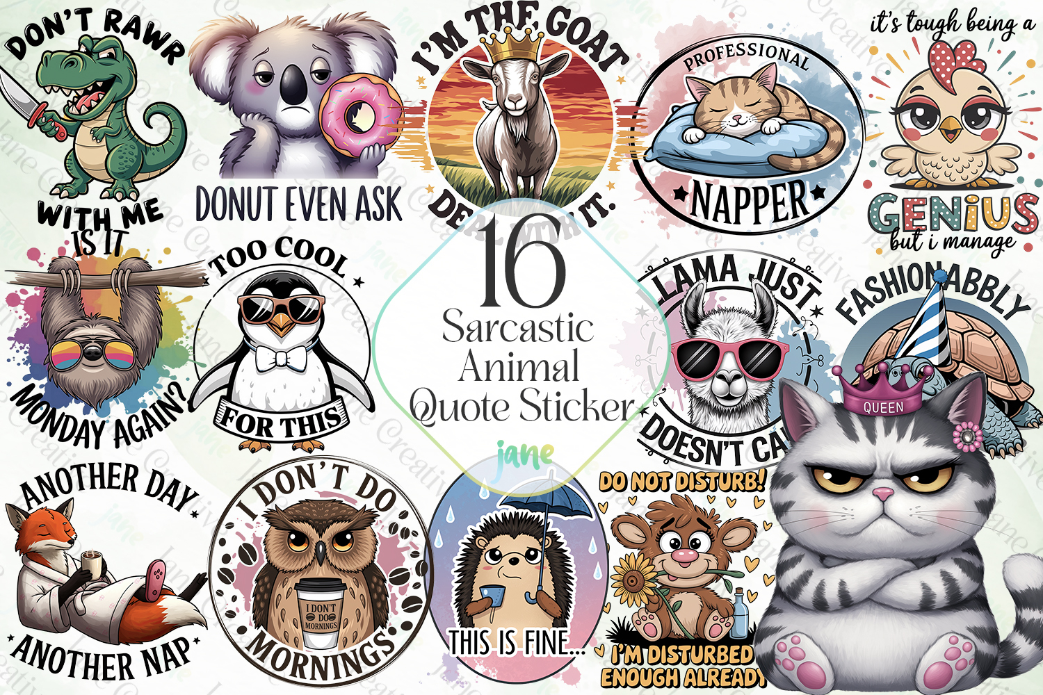 Sarcastic Animal Quote Sticker Clipart example image 1