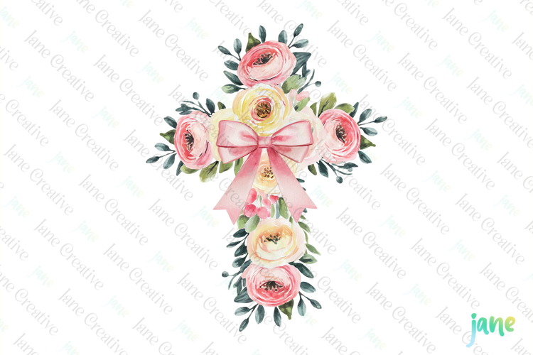 Spring Ranunculus Cross Coquette Bow Clipart example image 1