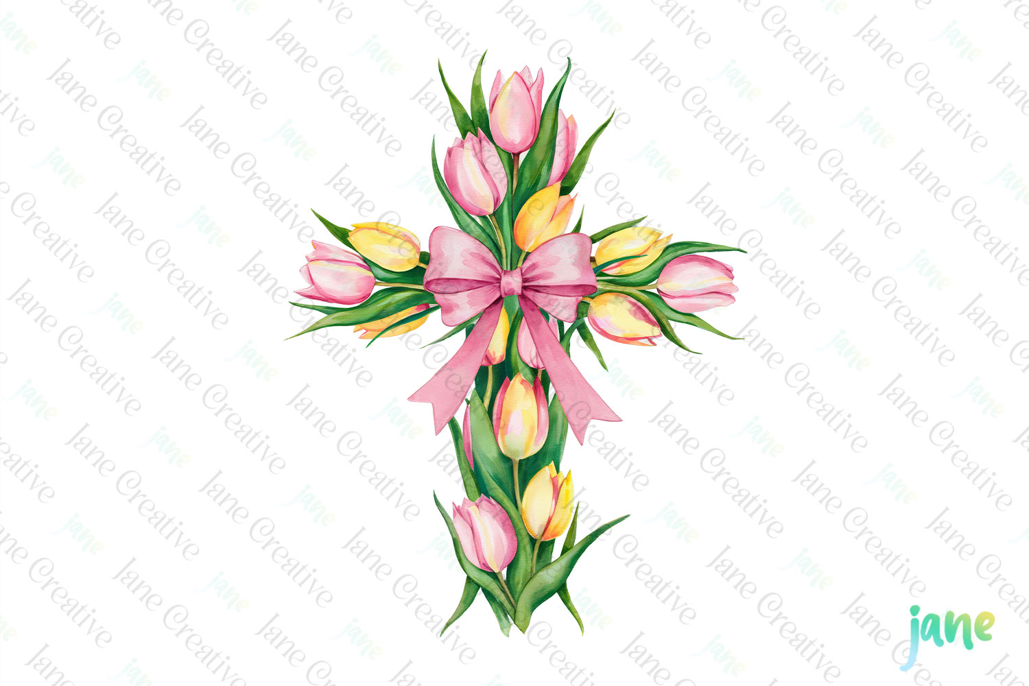 Spring Tulips Cross Coquette Bow Clipart example image 1