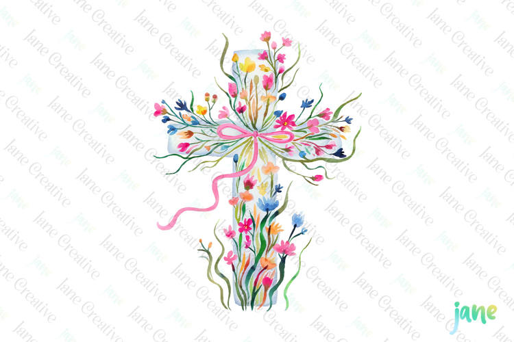 Spring Wildflowers Cross Coquette Bow Clipart example image 1