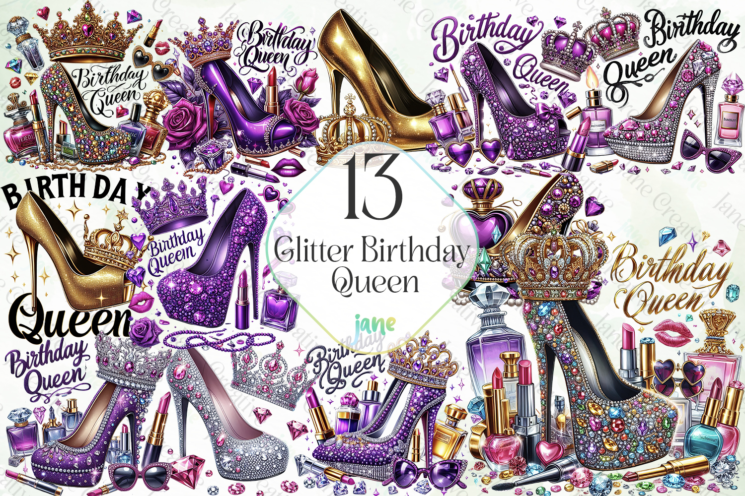 Watercolor Digital Instant Download Digital Design Sublimation Digital Prints Cute Design Sublimation Design Illustrations Art Glitter Birthday Queen Sublimation