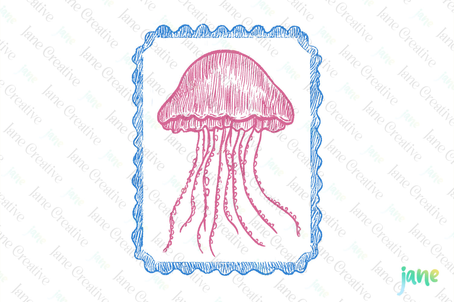 Art Illustrations Digital Download Digital Design Digital Prints Cute Design Sublimation Design Coquette Coastal Summer Frame Coquette Coastal Summer Coastal Jellyfish Frame