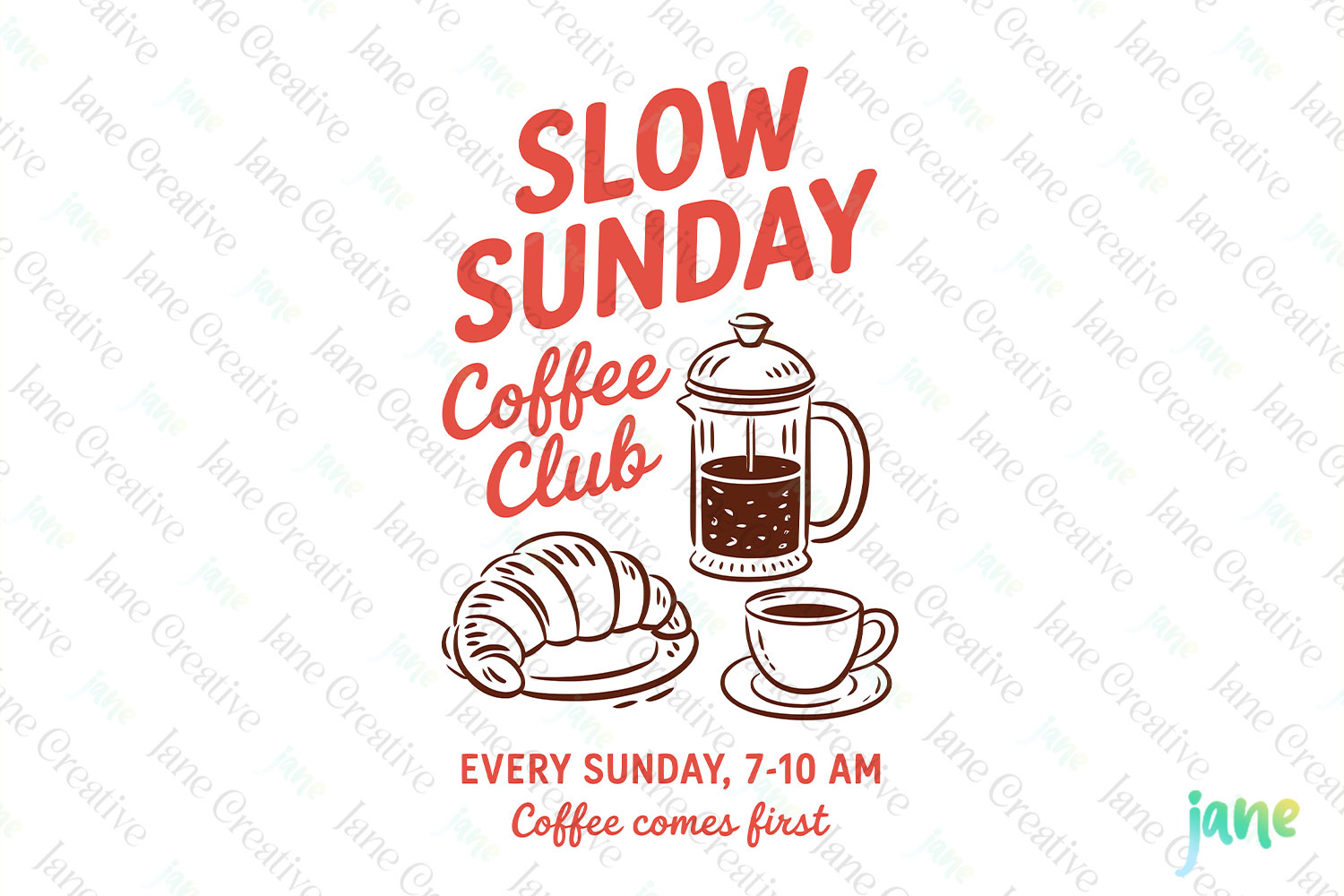 Watercolor Digital Instant Download Digital Design Sublimation Digital Prints Cute Design Sublimation Design Illustrations Art Slow Sunday Coffee Club Every Day