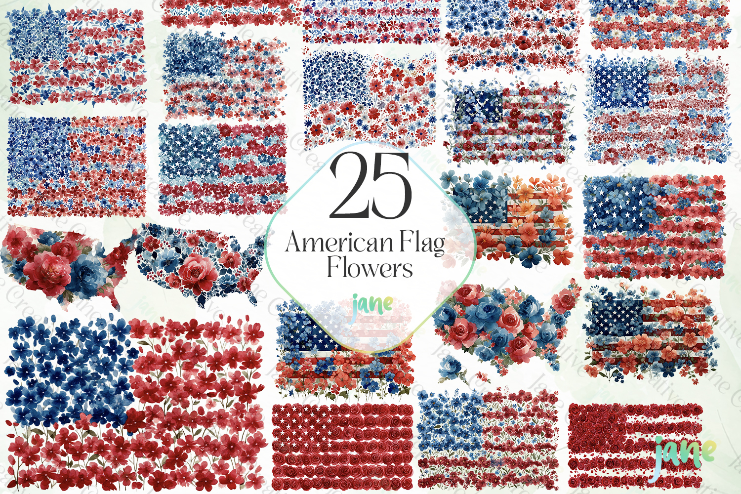 Watercolor Digital Instant Download Digital Design Sublimation Digital Prints Cute Design Sublimation Design Illustrations Art American Flag Flowers Clipart