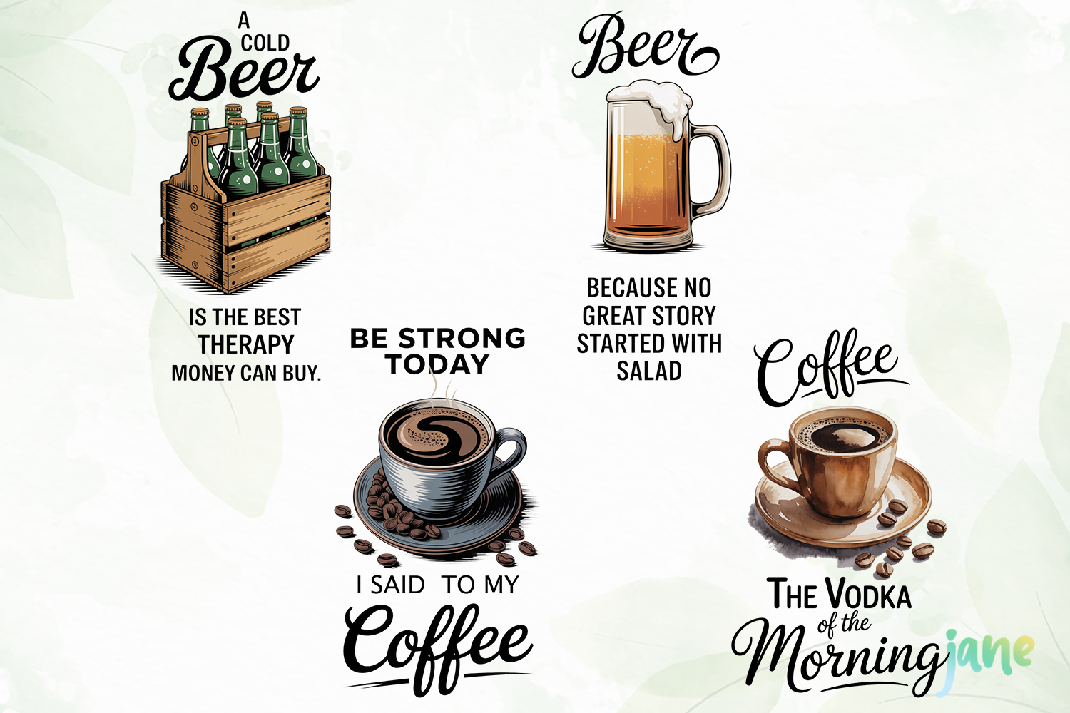 Watercolor Digital Instant Download Digital Design Sublimation Digital Prints Cute Design Sublimation Design Illustrations Art Beer And Coffee Themed Kitchen Towel Png