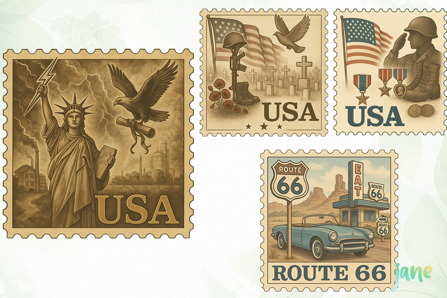 Watercolor Digital Instant Download Digital Design Sublimation Digital Prints Cute Design Sublimation Design Illustrations Art United States Stamp State 4th Of July