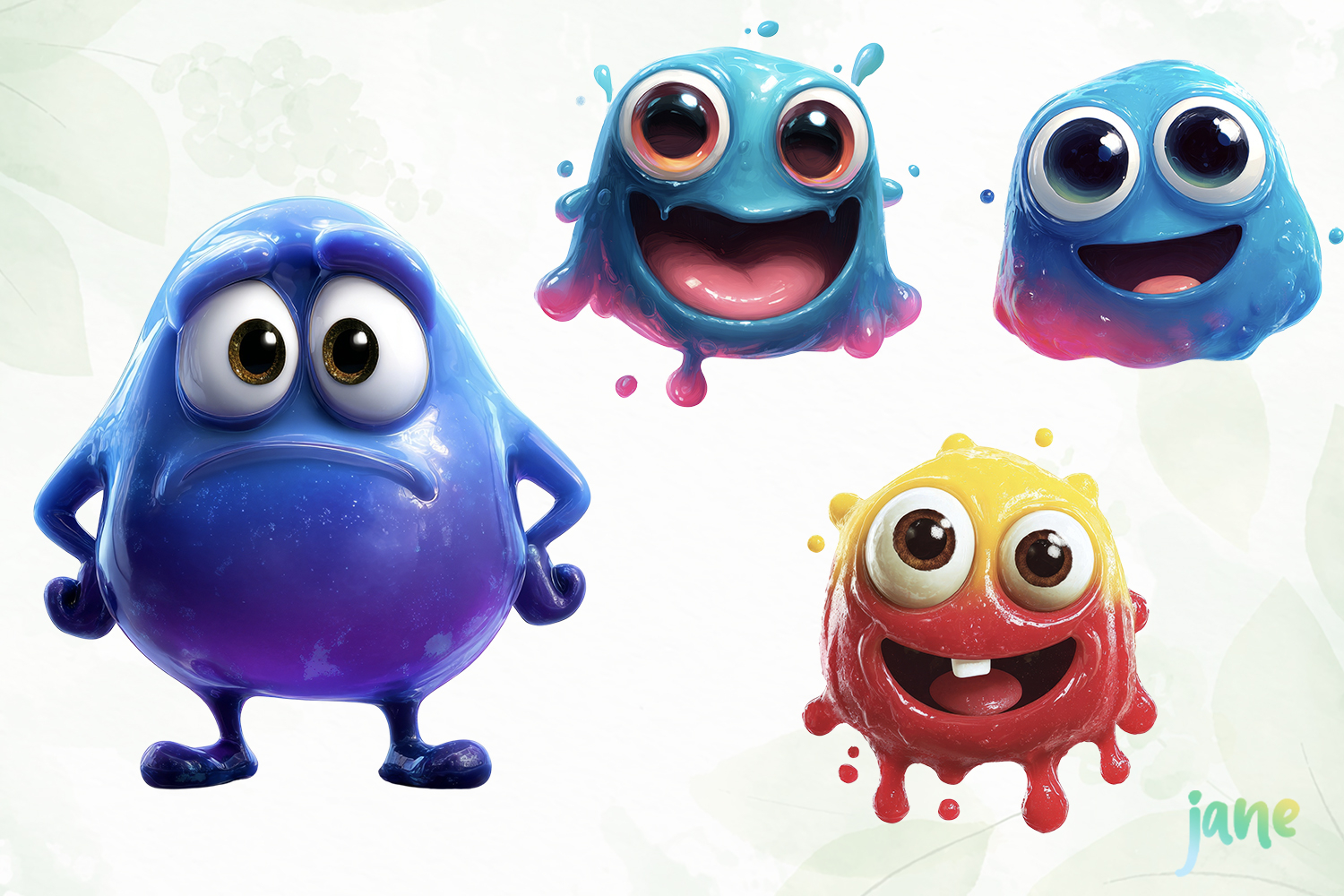 Watercolor Digital Instant Download Digital Design Sublimation Digital Prints Cute Design Sublimation Design Illustrations Art Slime Monster Sublimation