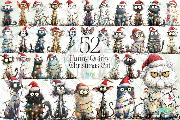 Quirky Christmas Cat Sublimation Bundle example image 1