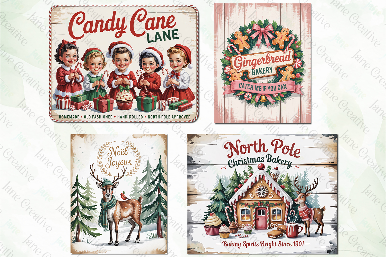 Hot Cocoa Clipart Vintage Christmas Signs Farmhouse Christmas Clipart Holiday Sublimation Bundle Farmhouse Christmas Decor Cozy Season Png Rustic Holiday Wall Art Candy Cane Lane Design Retro Christmas Kitchen Gingerbread Bakery Print