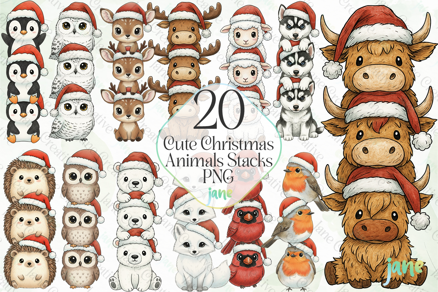Cute Christmas Animals Stacks PNG Bundle example image 1