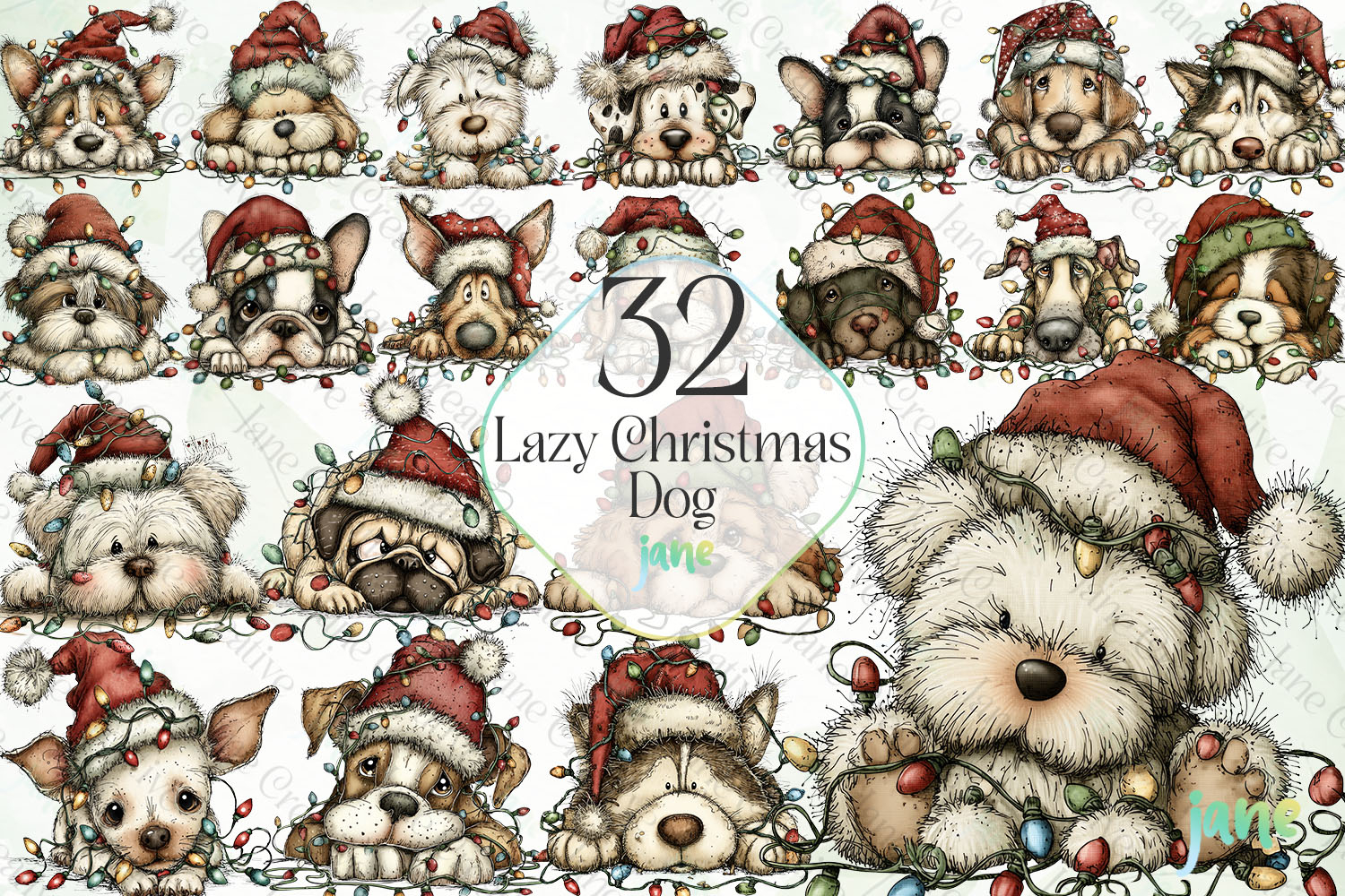 Lazy Christmas Dog Sublimation Bundle example image 1
