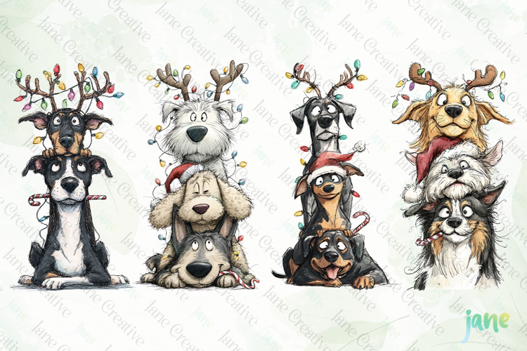 Christmas Dogs Clipart Funny Christmas Dog Png Cute Christmas Puppy Watercolor Christmas Dogs Festive Pet Clipart Santa Hat Dog Png Holiday Dog Illustration Reindeer Dog Design Holiday Animal Humor Christmas Dog Stack Png