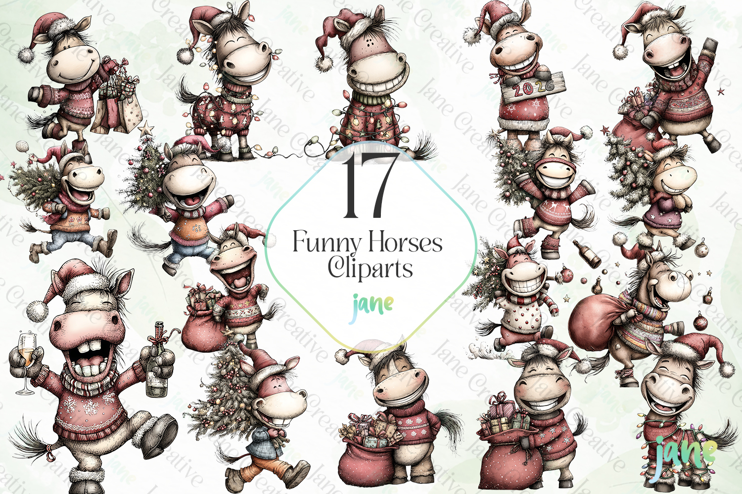 Watercolor Digital Instant Download Digital Design Sublimation Digital Prints Cute Design Sublimation Design Illustrations Art Funny Horses Cliparts Sublimation