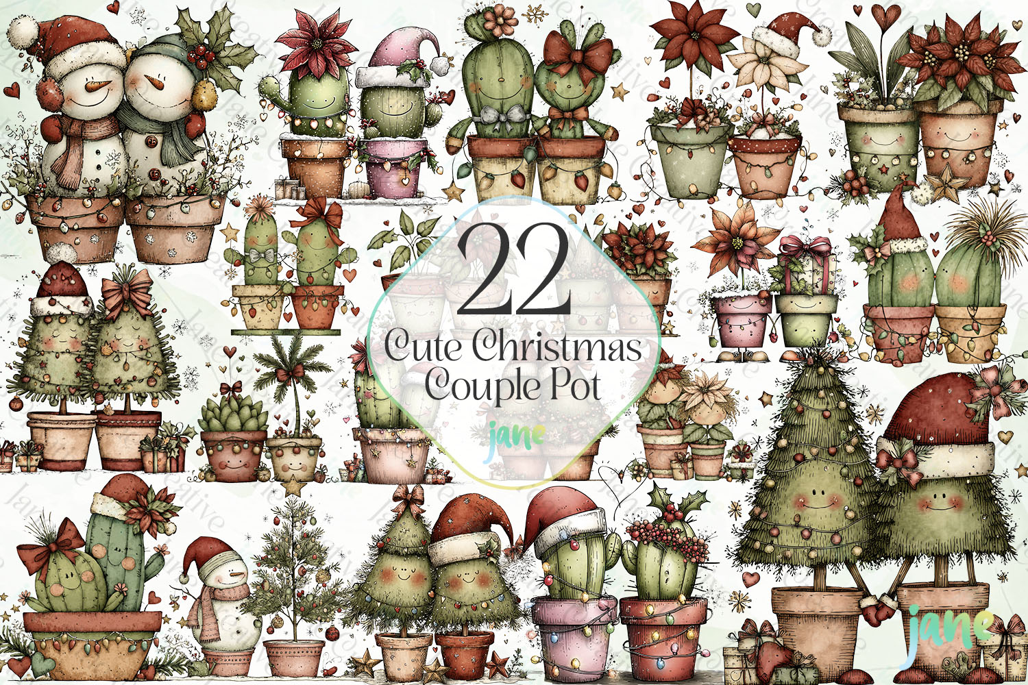 Potted Plant Clipart Cozy Christmas Clipart Christmas Plant Clipart Cactus Christmas Png Whimsical Christmas Png Succulent Christmas Art Cute Christmas Couple Holiday Pots Png Festive Plant Illustration Christmas Tree Couple