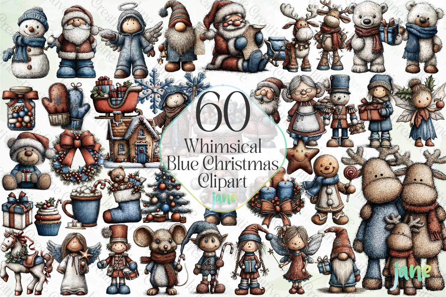 Whimsical Blue Christmas Clipart Bundle example image 1