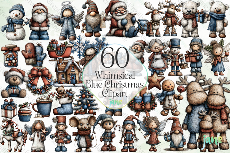 Similar Design Products to Whimsical Blue Christmas Clipart Bundle