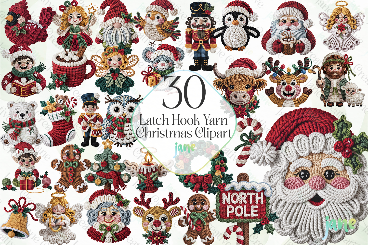 Latch Hook Yarn Christmas Clipart Bundle example image 1