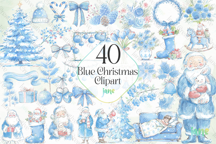 Winter Floral Png Watercolor Christmas Png Watercolor Santa Png Blue Christmas Clipart Pastel Christmas Clipart Christmas Floral Bouquet Blue Santa Clipart Elegant Christmas Design Blue Holiday Bundle Icy Blue Christmas Art