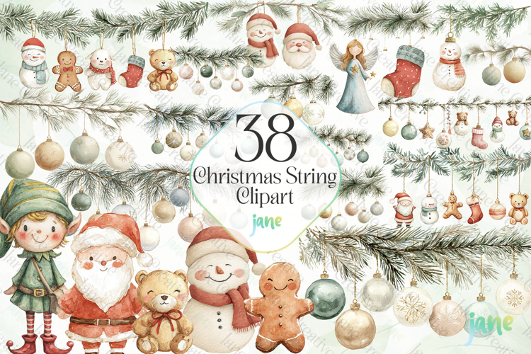 Watercolor Christmas Clipart Christmas Garland Png Christmas Branch Clipart Santa Snowman Png Gingerbread Christmas Png Hanging Ornament Clipart Holiday Decorations Clipart Christmas String Clipart Christmas Bauble String Watercolor Garland Png