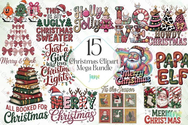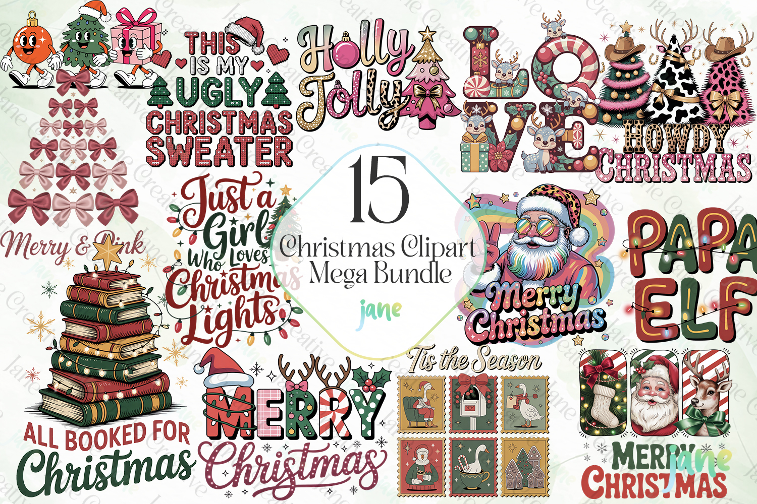 Watercolor Digital Instant Download Digital Design Sublimation Digital Prints Cute Design Sublimation Design Illustrations Art Christmas Clipart Mega Bundle