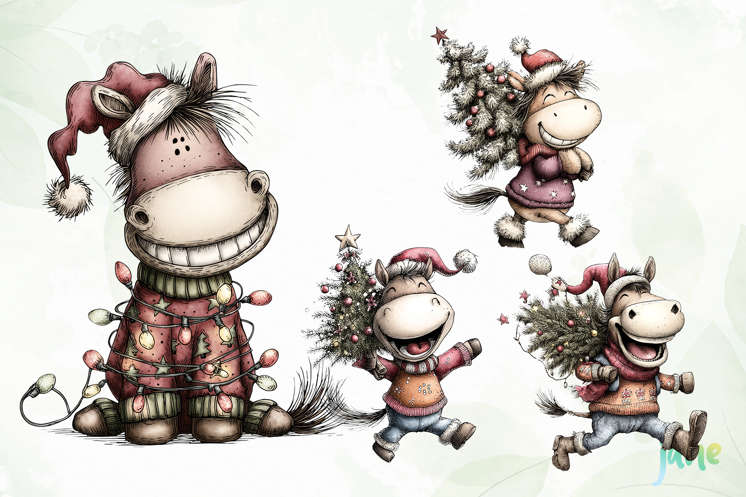 Watercolor Digital Instant Download Digital Design Sublimation Digital Prints Cute Design Sublimation Design Illustrations Art Funny Horses Cliparts Sublimation