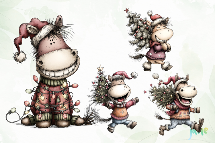 Funny Horses Cliparts Sublimation example image 1