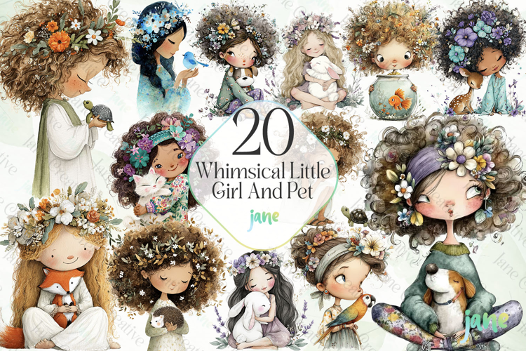 Similar Design Products to Whimsical Little Girl And Pet Clipart Bundle