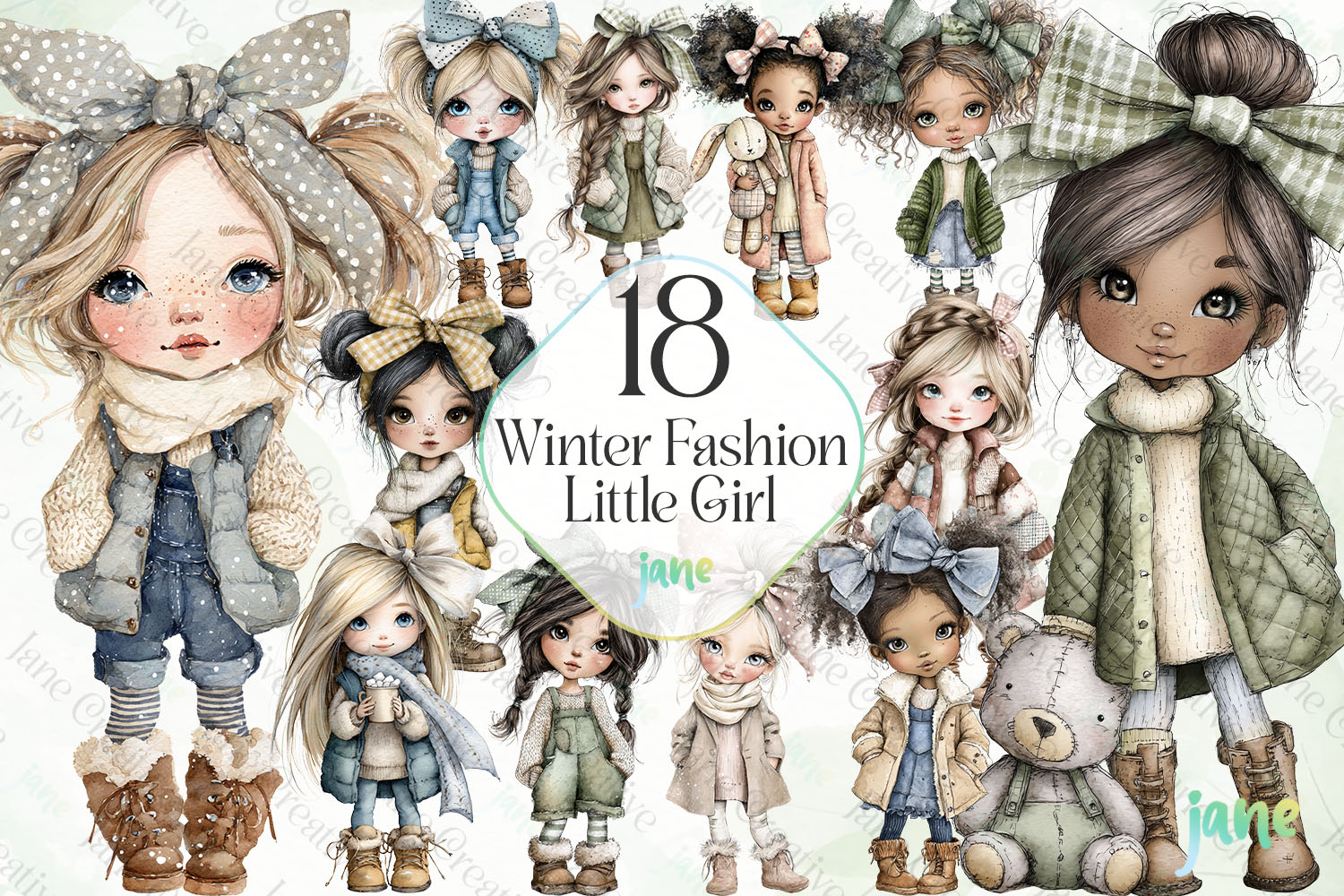 Winter Fashion Little Girl Clipart Bundle example image 1