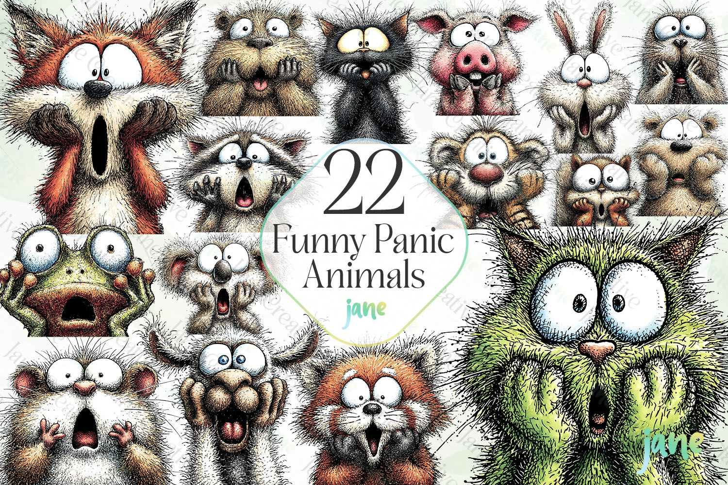 Similar Design Products to Funny Panic Animals Clipart Bundle