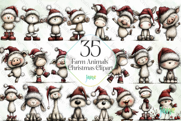 Watercolor Digital Instant Download Digital Design Sublimation Digital Prints Cute Design Sublimation Design Illustrations Art Farm Animals Christmas Clipart