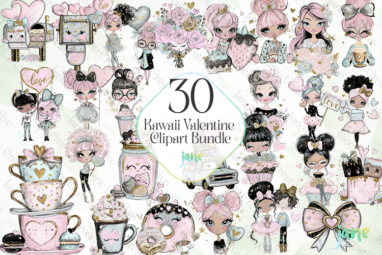 Kawaii Valentine Clipart Bundle