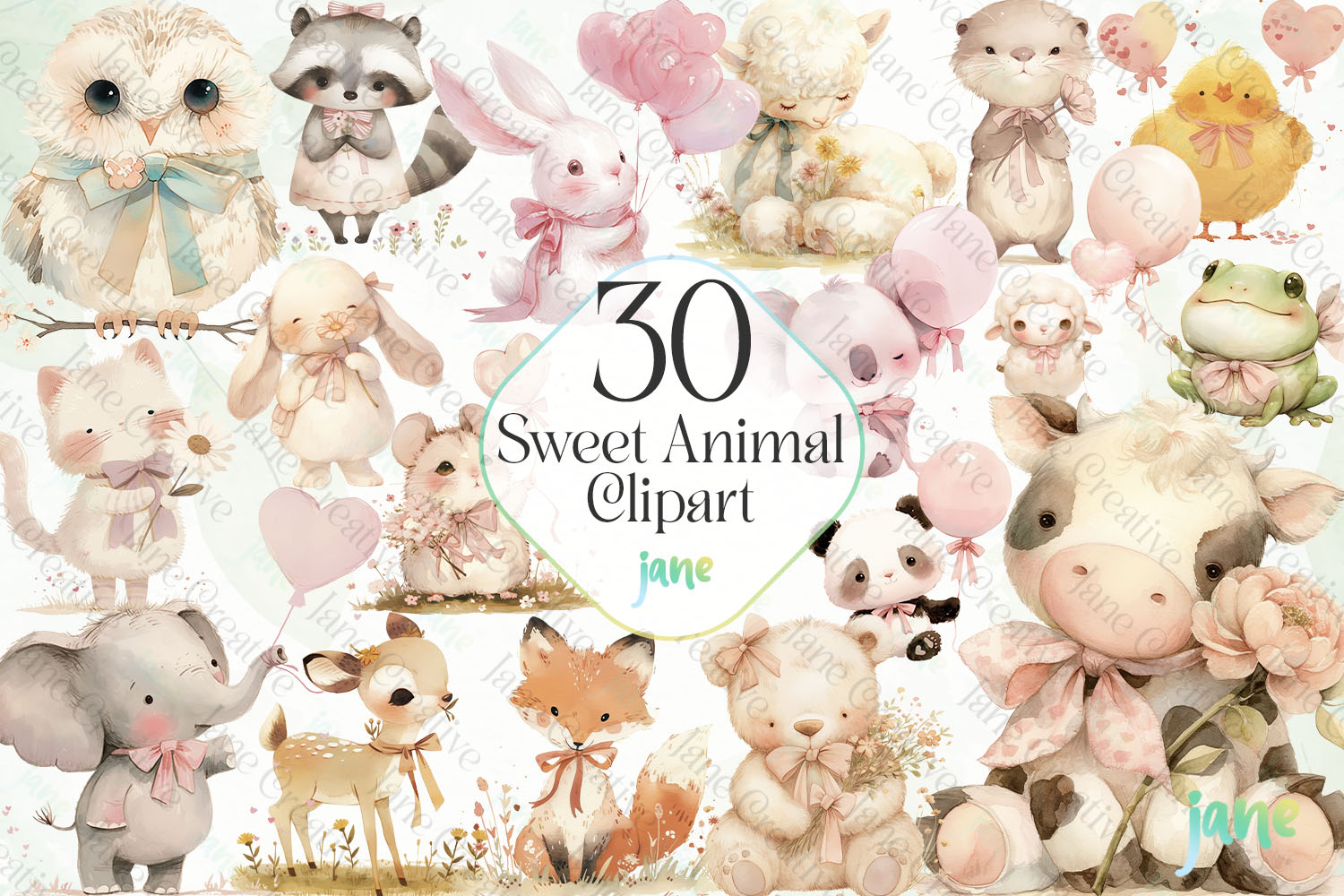 Sweet Animal Sublimation Bundle Clipart example image 1