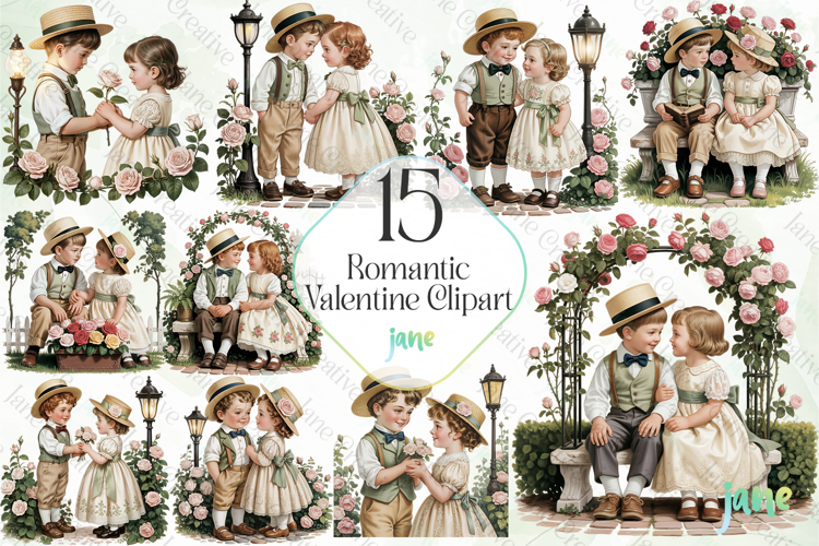 Valentine Clipart Watercolor Kids Vintage Valentine Nursery Valentine Cute Couple Clipart Storybook Style Vintage Love Art Children Couple Png Romantic Kids Art Valentine Children