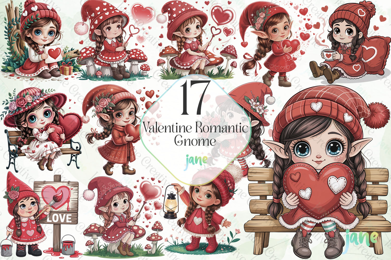 Watercolor Digital Instant Download Digital Design Sublimation Digital Prints Cute Design Sublimation Design Illustrations Art Valentine Romantic Gnome