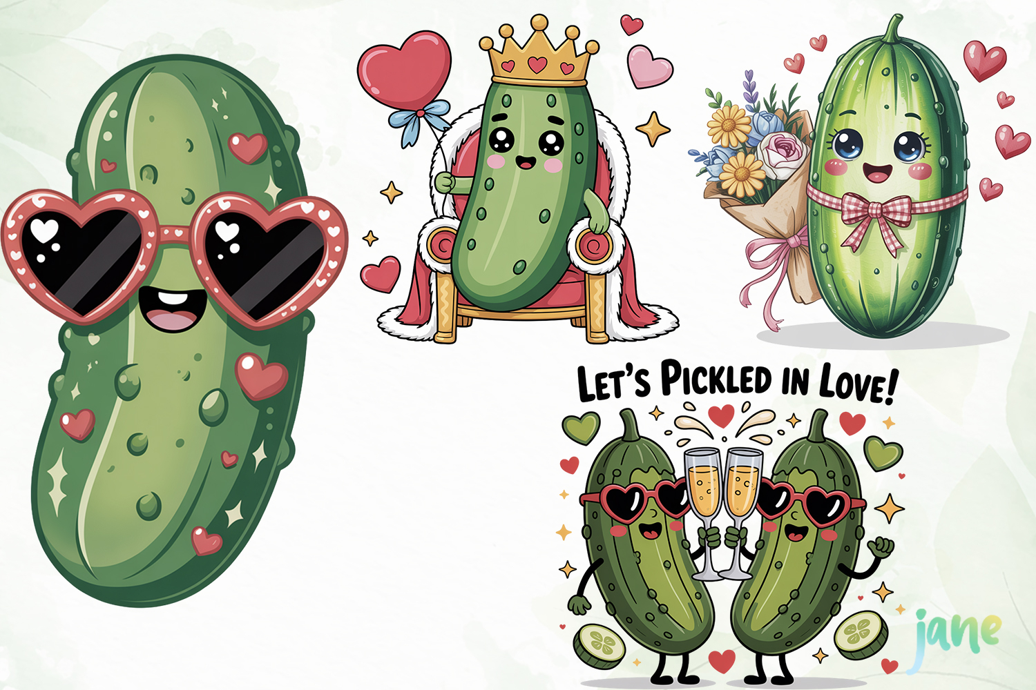Watercolor Digital Instant Download Digital Design Sublimation Digital Prints Cute Design Sublimation Design Illustrations Art Pickle Valentine Clipart