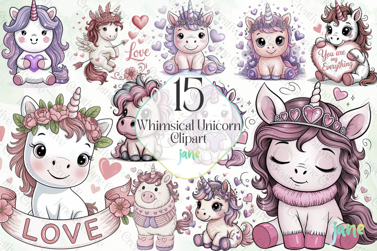 Whimsical Unicorn Clipart example image 1