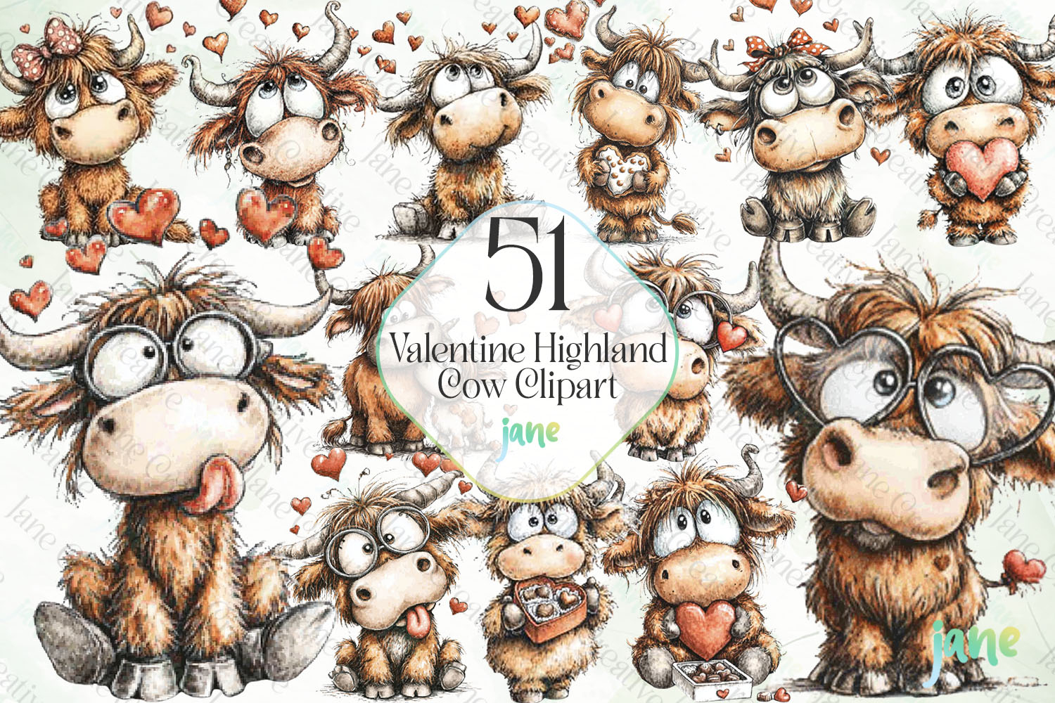Watercolor Digital Instant Download Digital Design Sublimation Digital Prints Cute Design Sublimation Design Illustrations Art Valentine Highland Cow Clipart