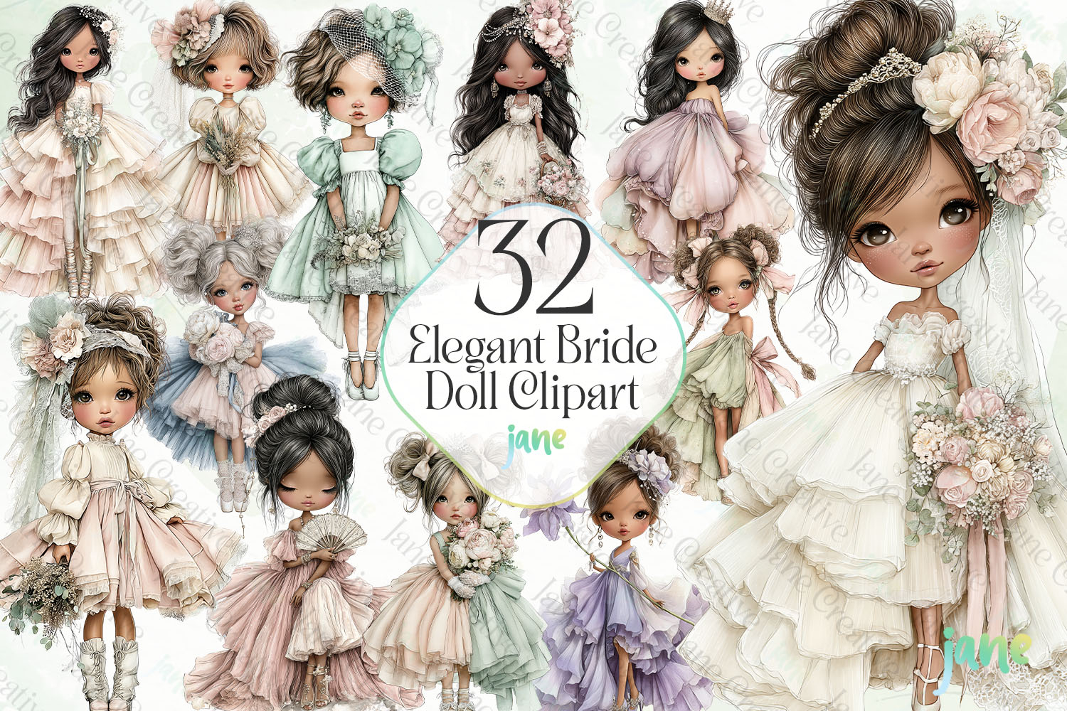 Similar Design Products to Elegant Bride Doll Clipart Bundle