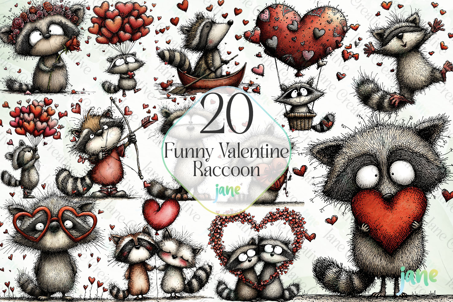 Funny Valentine Raccoon Clipart Bundle example image 1
