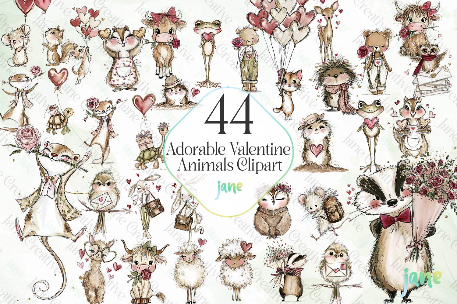 Watercolor Digital Instant Download Digital Design Sublimation Digital Prints Cute Design Sublimation Design Illustrations Art Adorable Valentine Animals Clipart