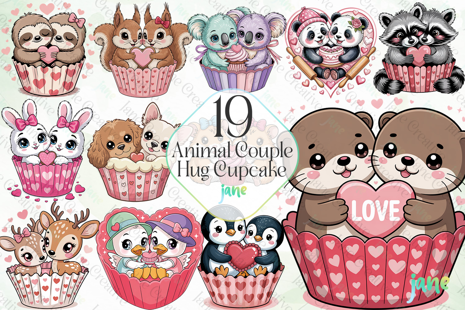 Watercolor Digital Instant Download Digital Design Sublimation Digital Prints Cute Design Sublimation Design Illustrations Art Animal Couple Hug Cupcake