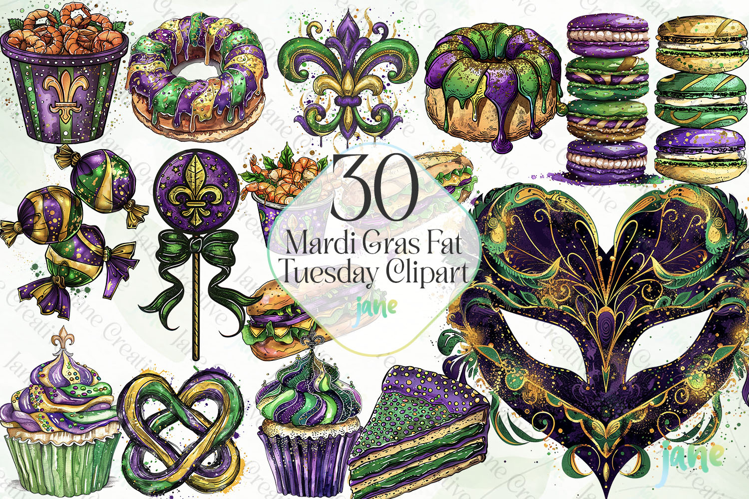 Watercolor Digital Instant Download Digital Design Sublimation Digital Prints Cute Design Sublimation Design Illustrations Art Mardi Gras Fat Tuesday Clipart