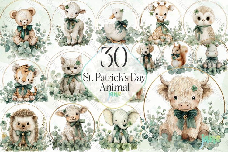 Clover Clipart St Patricks Day Clipart Baby Animal Clipart Watercolor Animal Clipart St Patricks Day Animals Nursery Animal Art Irish Animal Clipart Shamrock Animal Clipart Lucky Animals Clipart Green Valentine Animals