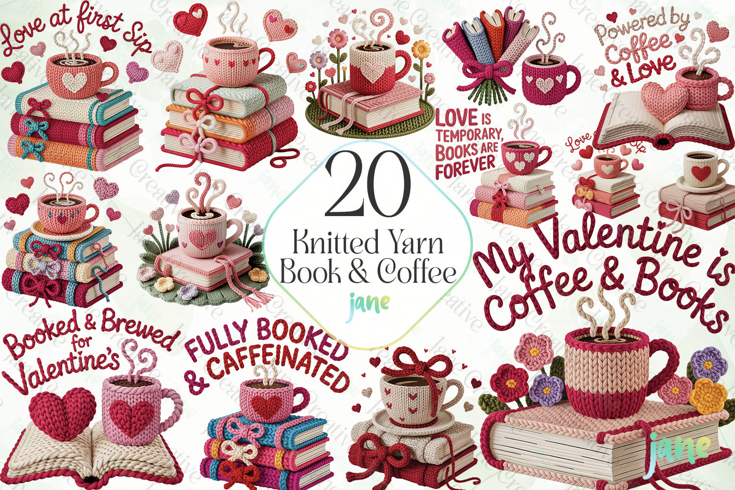 Coffee Lover Clipart Book Lover Clipart Book And Coffee Clipart Valentine Coffee Clipart Knitted Heart Clipart Cozy Valentine Clipart Knitted Yarn Clipart Yarn Coffee Clipart Crochet Style Clipart Faux Knit Clipart